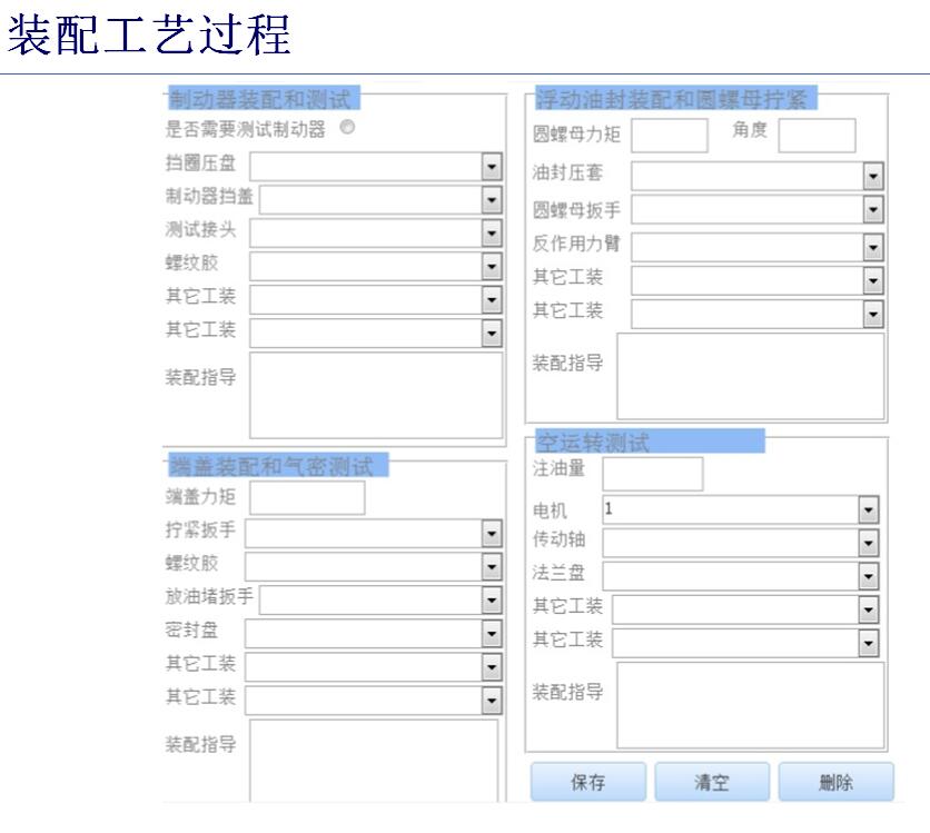 1. 在顯示器上顯示工序一對應的,擋圈壓盤,制動器擋蓋,測試接頭,螺紋膠,其他工裝1,其他工裝2,裝配指導等信息。 |